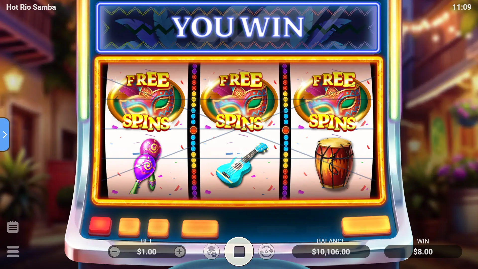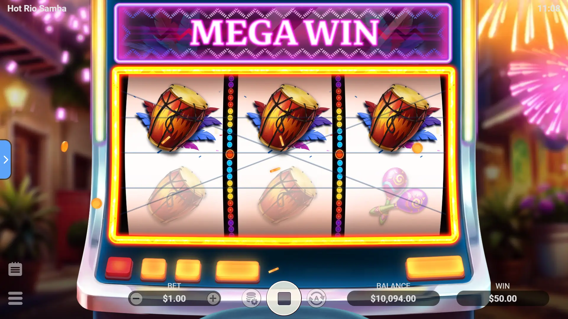 Los símbolos vacíos parpadean como estallidos de confeti, pero la verdadera magia llega con los iconos deslumbrantes que se deslizan en las líneas ganadoras. Los Wilds entran en el ritmo, rellenando espacios y creando nuevas combinaciones fluidas. Aquí es donde la samba se intensifica, los colores se vuelven más brillantes y las recompensas comienzan a fluir en perfecta armonía festiva.
