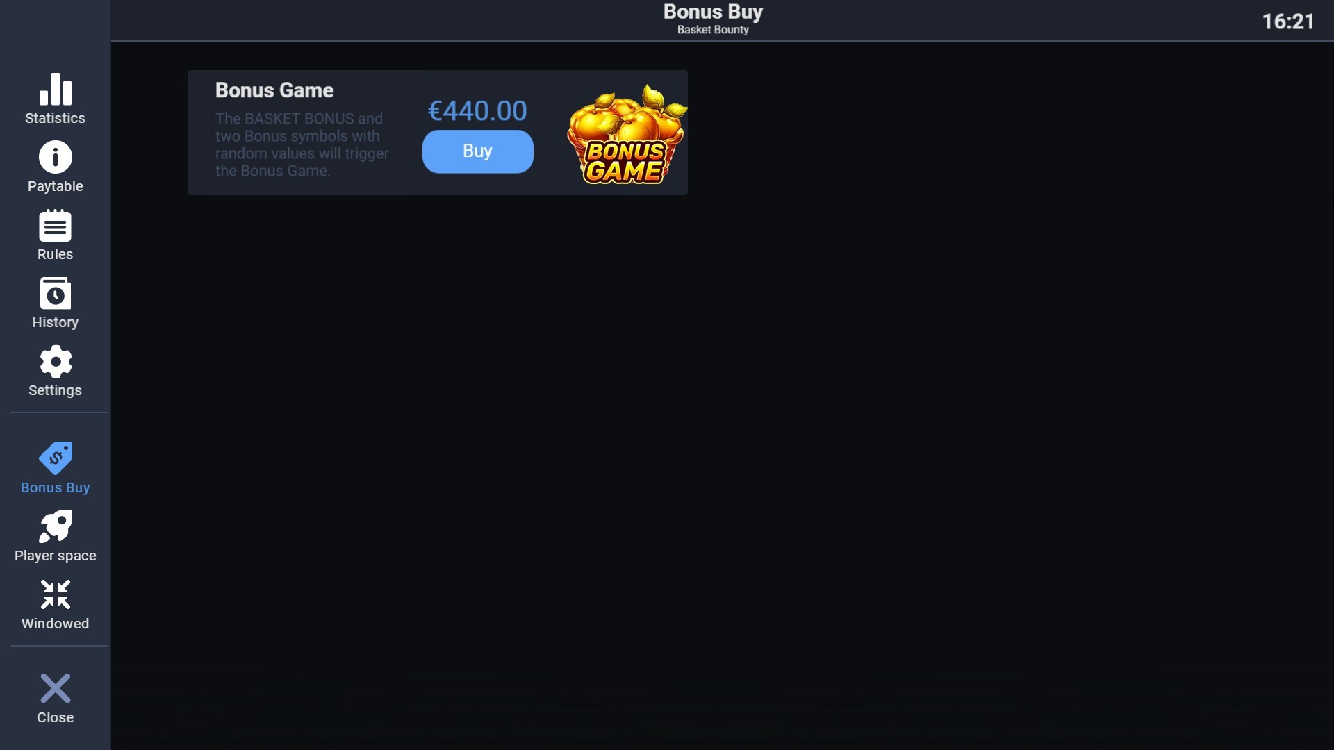 The Basket Bonus symbol can only appear on reel 2 in the main and Bonus games. It does not contain an amount. In the main game, it acts as one of the conditions for activating the Bonus game. -