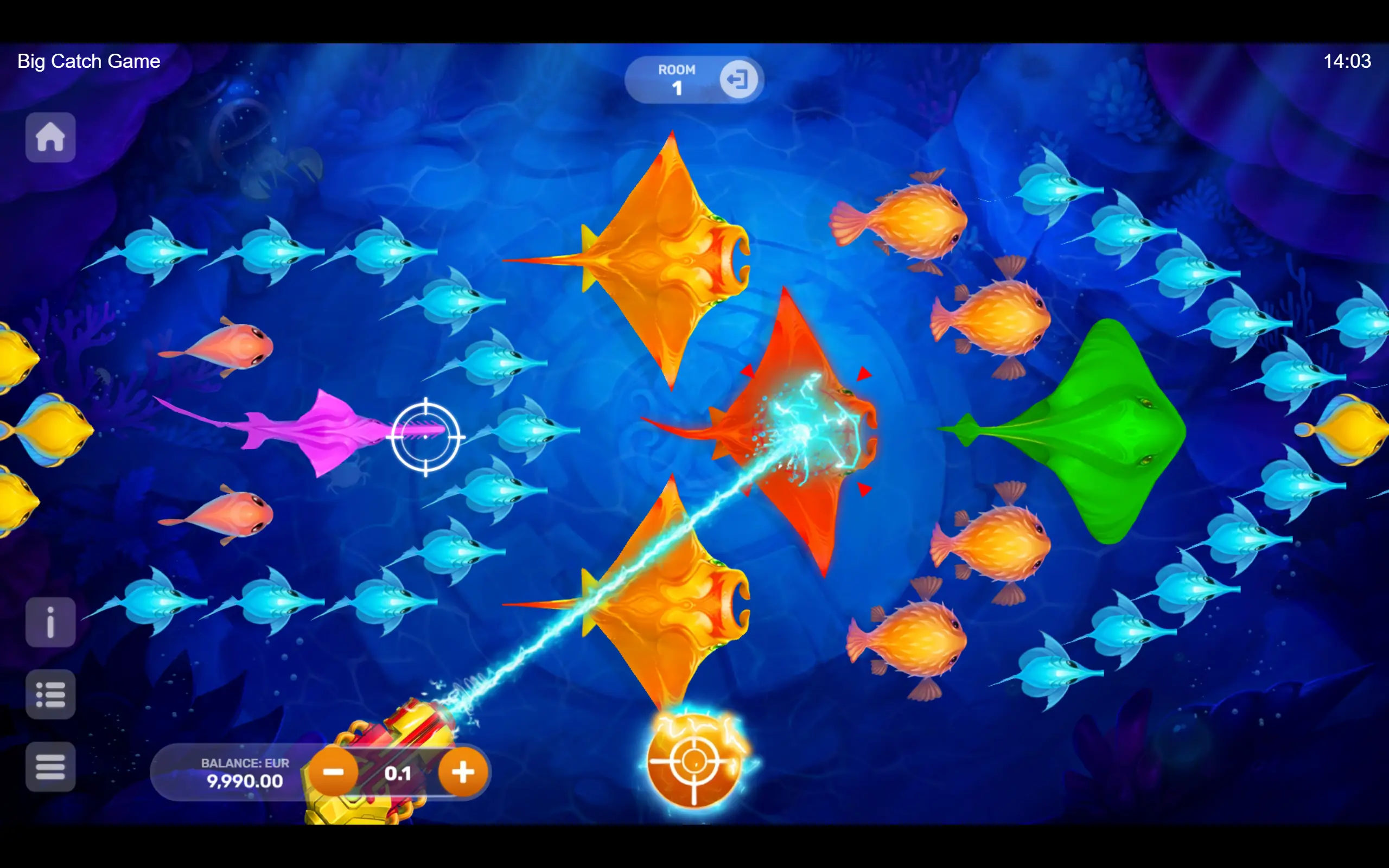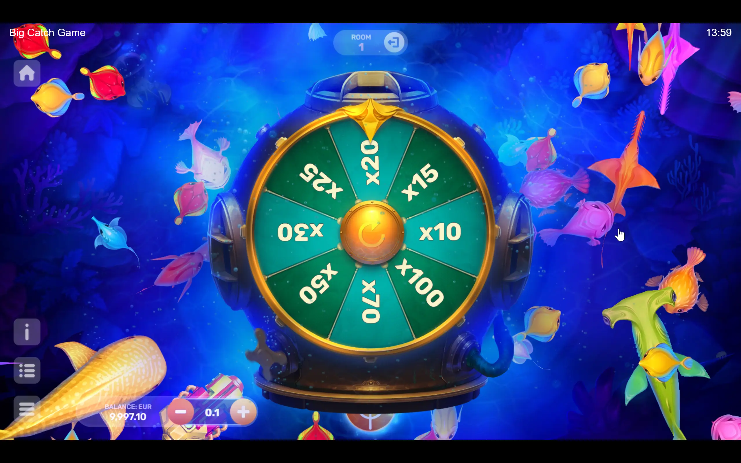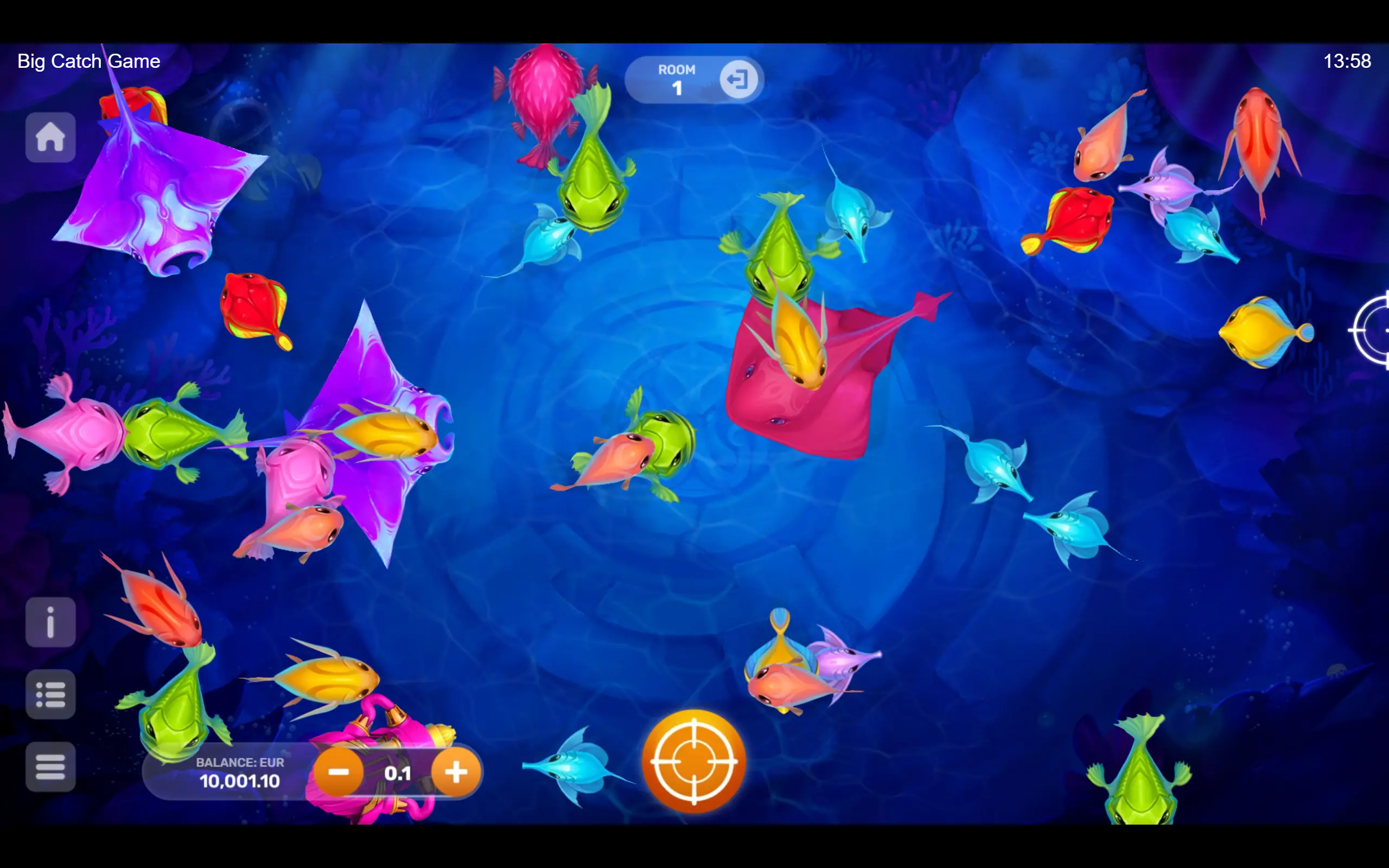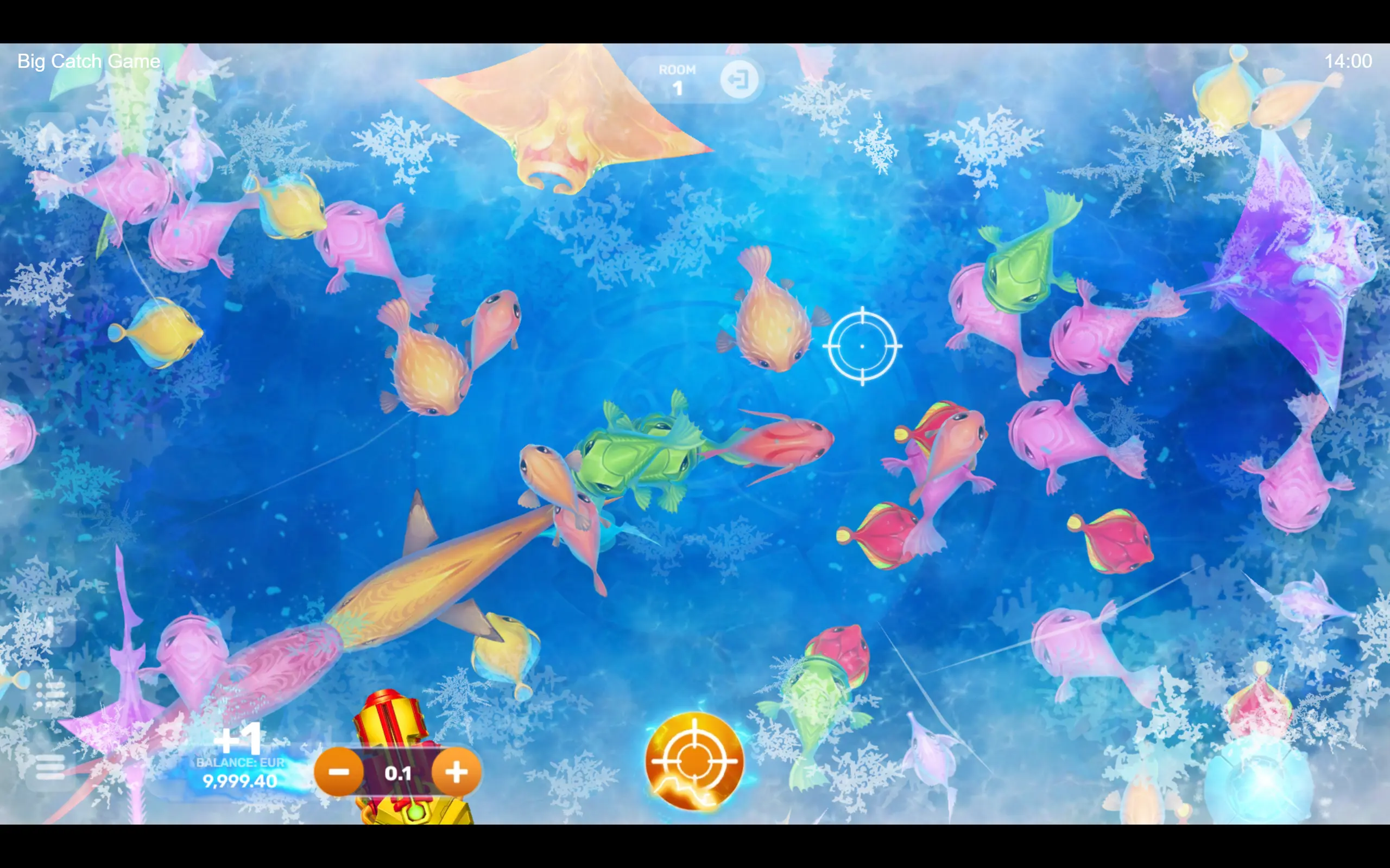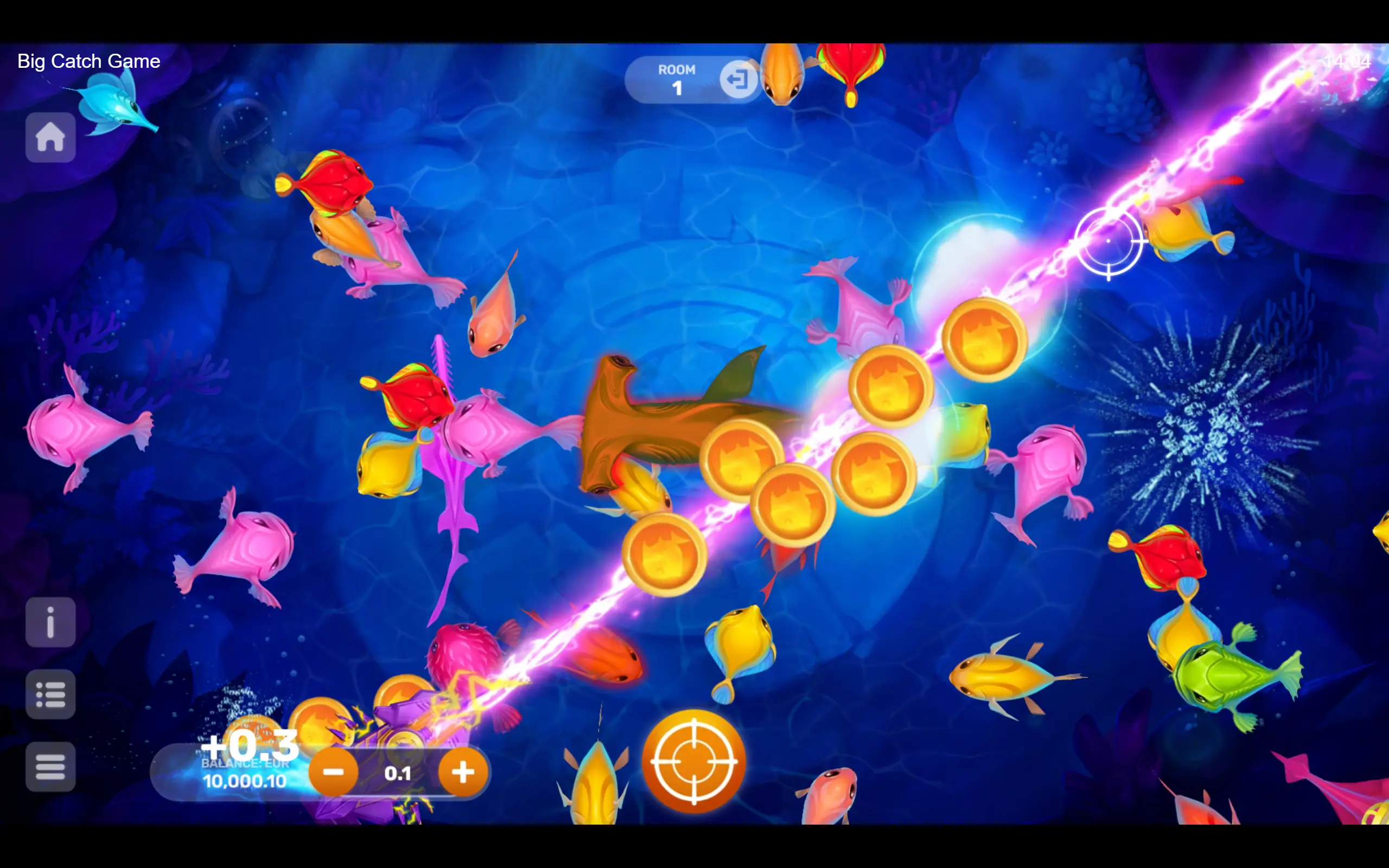 Vibrant and adorable underwater inhabitants reign supreme, but perhaps you’ve got what it takes to conquer the seas. Whether you prefer outplaying the fish solo or teaming up with your friends in multiplayer mode, dive into the adventure. With distinct rooms – aquariums with diverse bet ranges – pick the one where you’ll truly feel like a fish in water! The captivating gameplay seamlessly immerses you in a whirlwind of events, where the boss, the Purple Lord, can appear at any moment. The boss appears randomly, offering players the chance to win a super bonus!