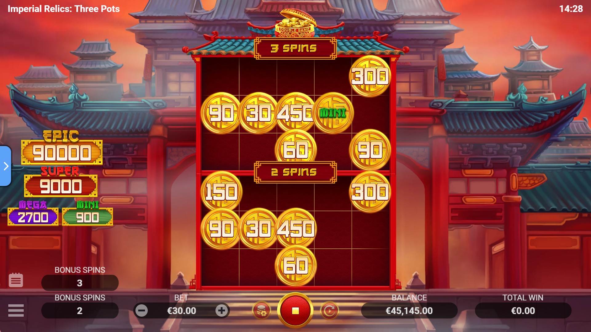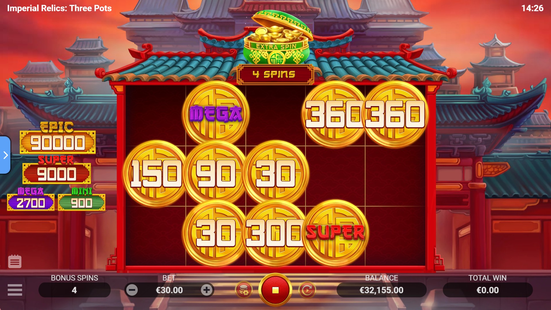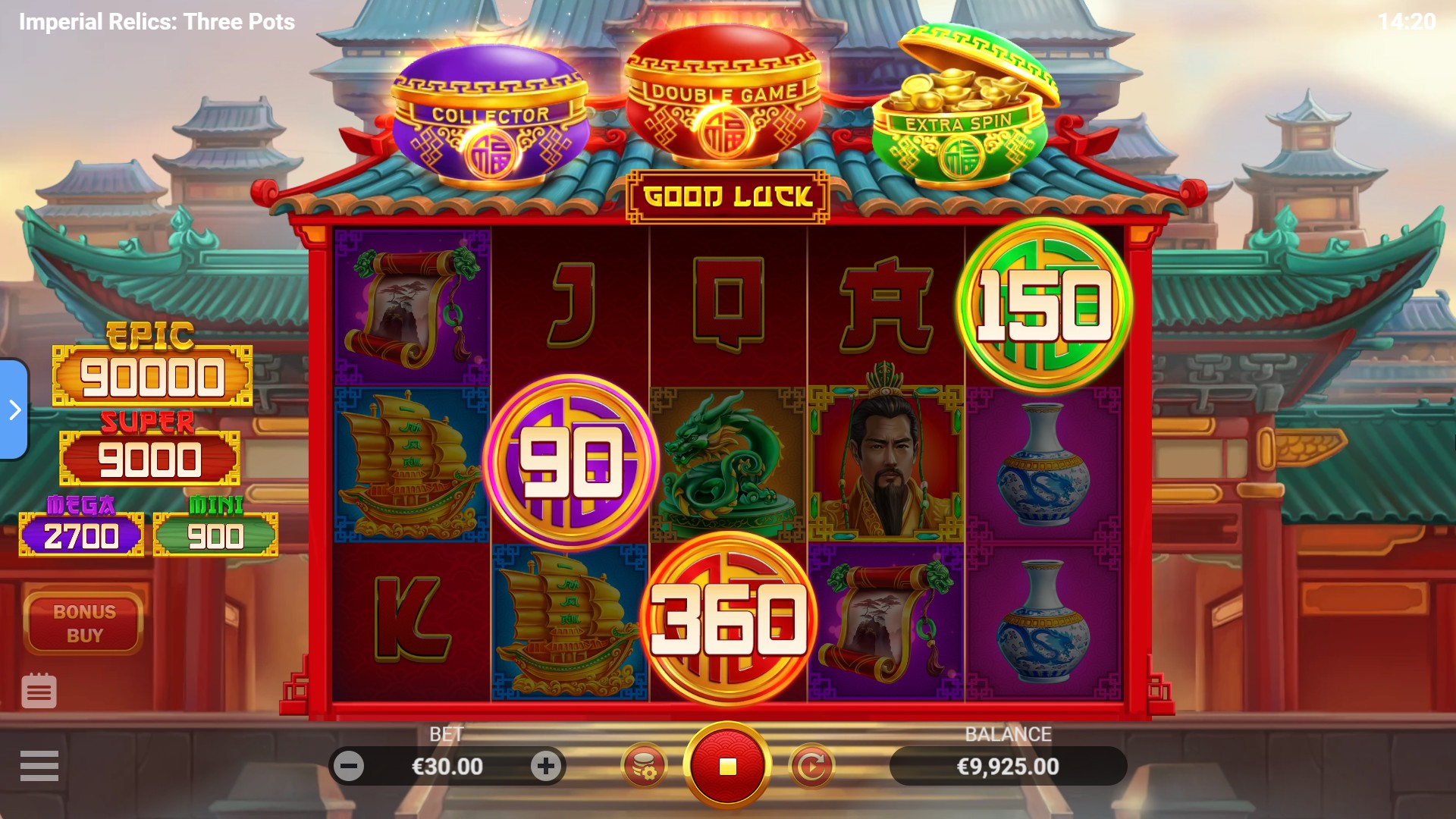 In Imperial Relics: Three Pots, ancient treasures on the reels are your sacred symbols of power. At the centre of it all is a wise emperor, a flawless ruler who blesses your winnings and brings true prosperity. But the real thrill lies in the Bonus Game with boosters! It can be launched with one, two, or all three boosters active, giving you a total of seven possible variations – and a chance to unlock the dynasty’s treasures. With 20 fixed lines, 15 unique symbols, and an atmosphere that captures the time of Imperial China, this game is a journey into a golden era.