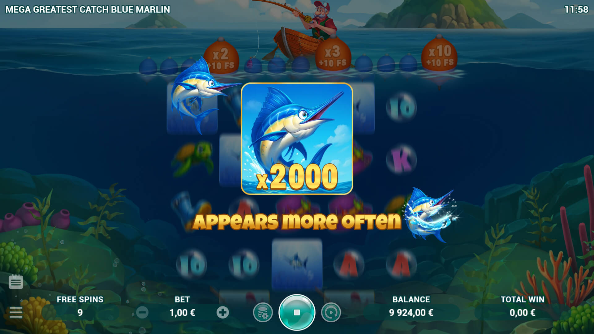 The brave fisherman Harry goes to sea again to hunt for the legendary Blue Marlin. Real treasures are waiting for you under the turquoise waves! Don’t miss the moment when random Scatters open the way to Free Spins, random Wilds appear from the depths, and the Scatter Respin feature gives you a second chance to win. And when the Super Bonus Game is activated, you’re transported to the most generous waters, where the Blue Marlin is more frequent and the rewards are truly epic.