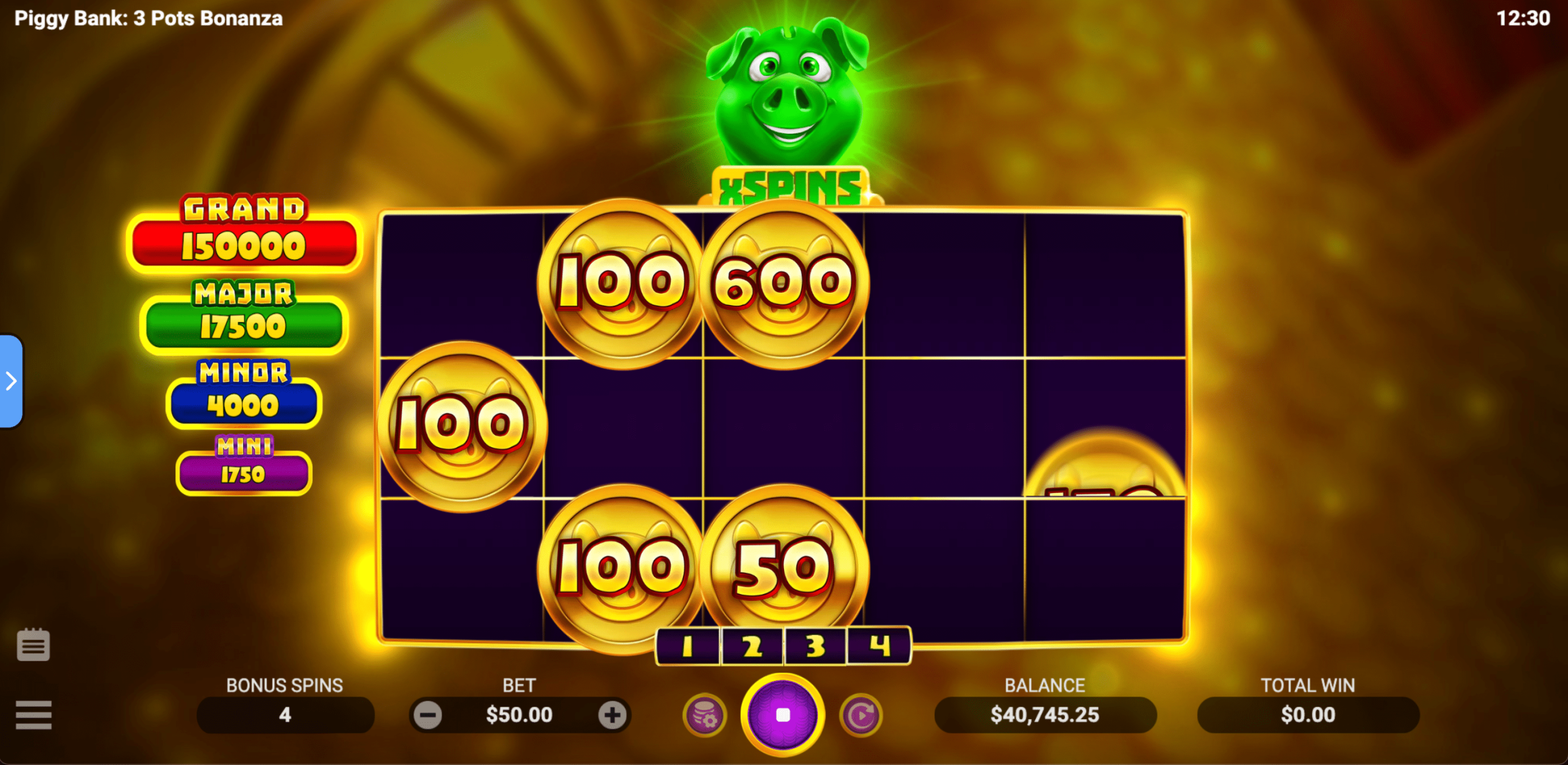 The Green Piggy Bank introduces the xSpins booster. It extends the duration of the Bonus Game and increases the chances of collecting additional Bonus symbols. With each new symbol landed, the spin counter resets, keeping players engaged throughout the feature.