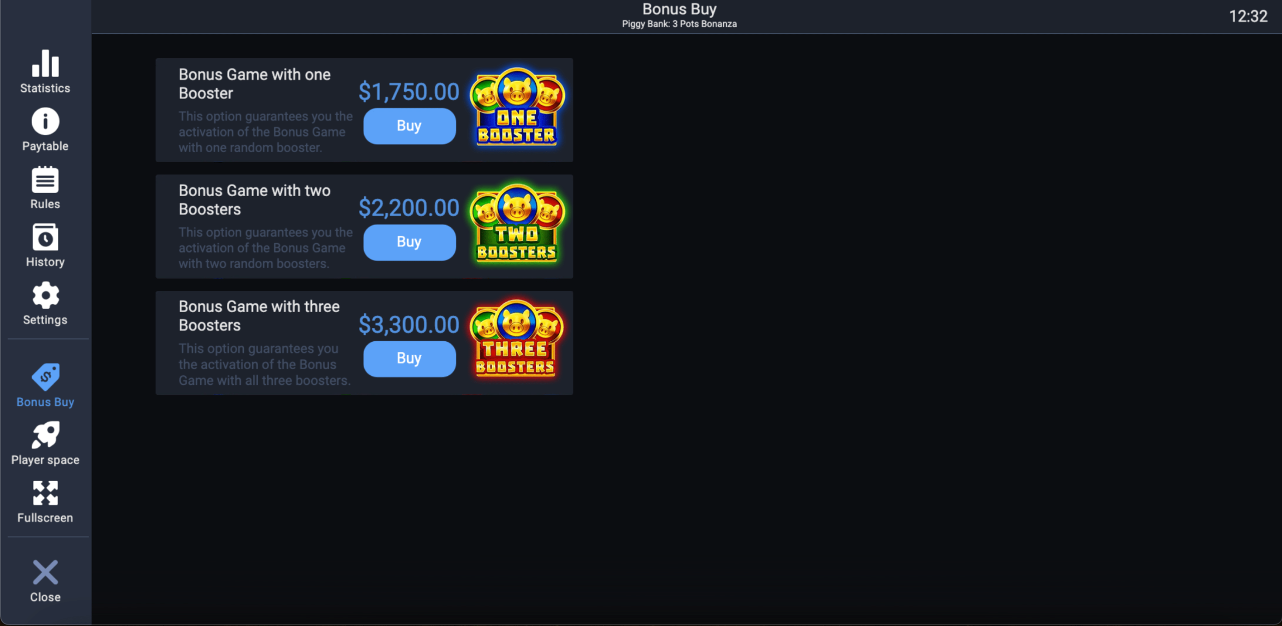 For those seeking instant action, the Bonus Buy feature provides direct access to the Bonus Game with selected boosters. This option supports different play preferences and adds flexibility to session strategies, allowing players to move straight to the most rewarding moments of the game.